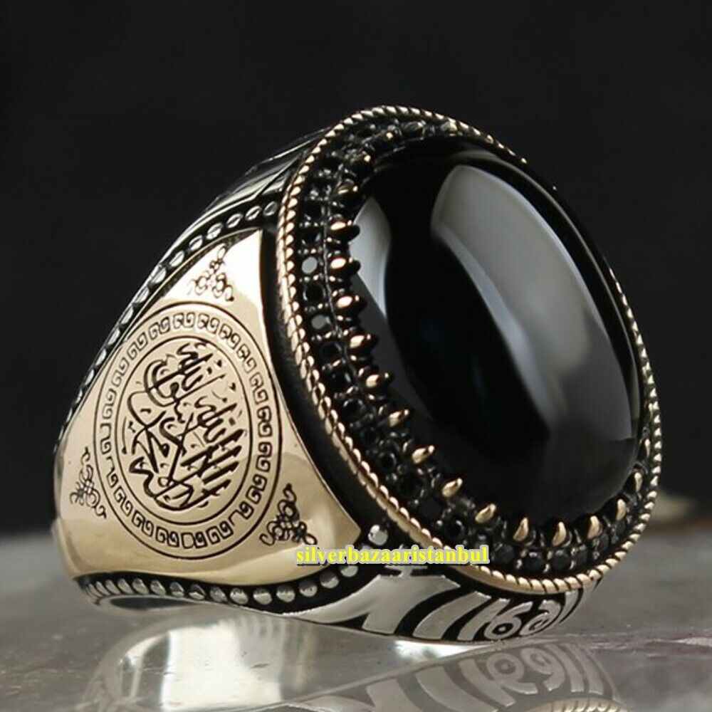 Islamic Style Onyx Stone Handmade 925 Sterling Silver Mens Ring
