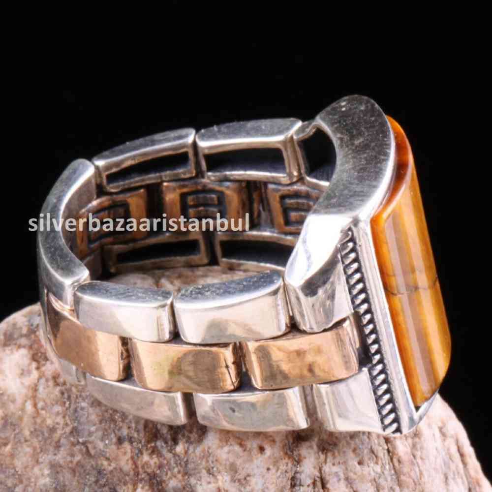 Tigers Eye Stone Jewelry Clock 925 Sterling Silver Men Ring