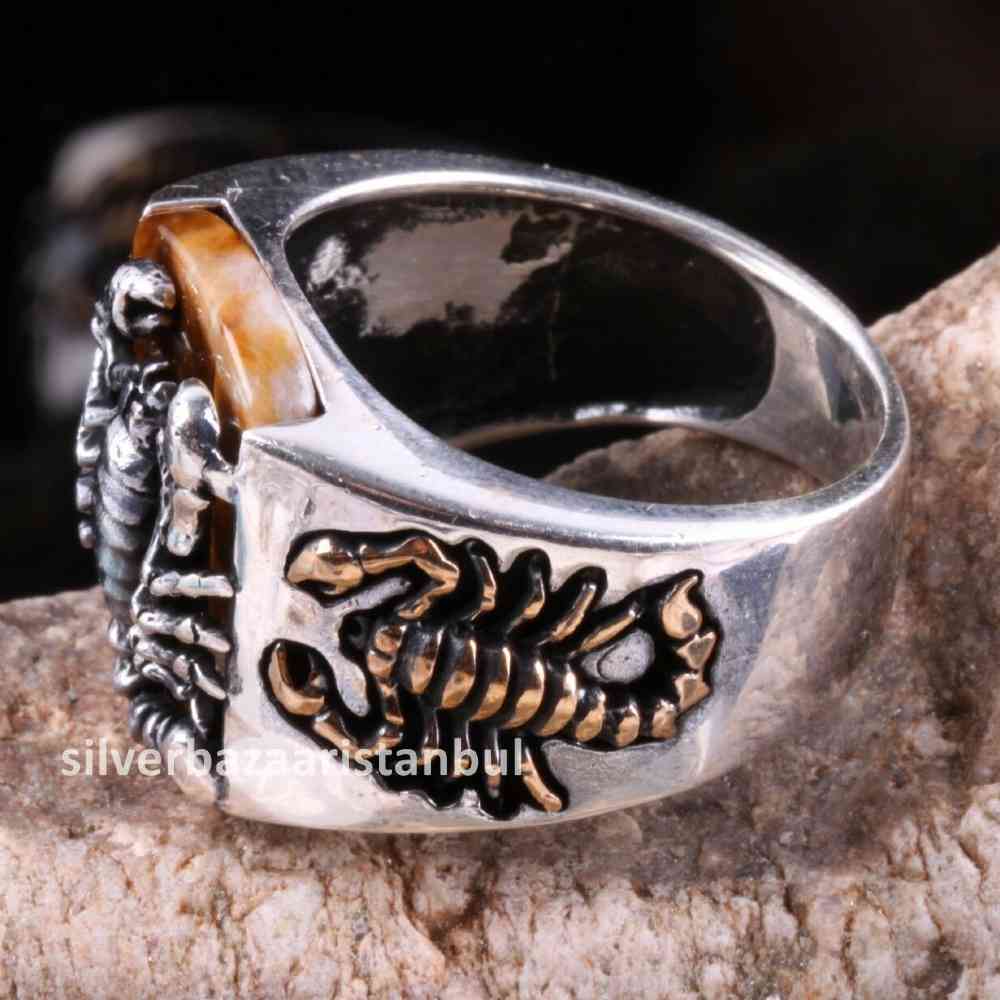 Tigers Eye Stone Scorpıon Solid 925 Sterling Silver Men Ring